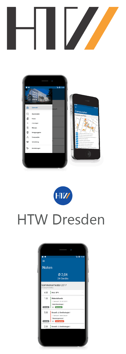 Für die Studierenden der Hochschule für Technik und Wirtschaft Dresden (HTW) wurde eine neue App entwickelt. Mit der HTW Dresden App behalten die Studierenden den Überblick über erbrachte Leistungen, anstehende Prüfungen, den Speiseplan und den Campus ganz allgemein – frei nach dem Motto der Fachhochschule: "praktisch mehr erreichen".